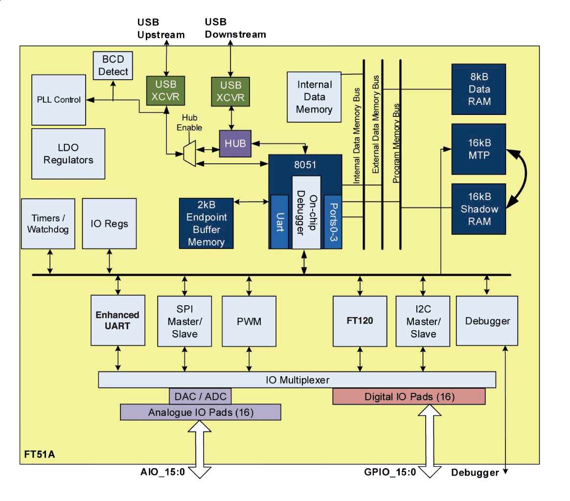 The FT51 with 8051 compatible-core offers outstanding performance with an extensive